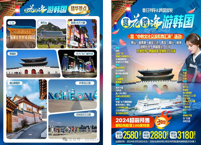 根據鐵路總公司批復時間提前2小時統(tǒng)一抵達指定火車站集合,找到相應團號領隊領取專列胸牌,乘專列前往青島,開啟中韓兩國跨國之旅。