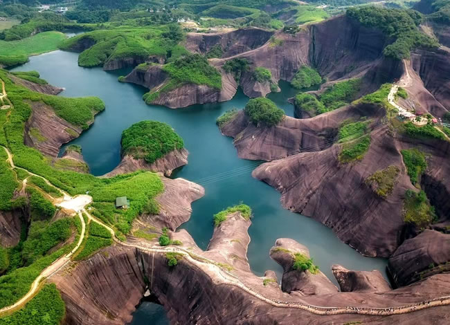 抵達后,前往郴州抖音最火網(wǎng)紅打卡地【高椅嶺】(游覽時間約3.5小時)。車覽【馬皇丘大峽谷】,峽谷原為一條小路穿行而過,現(xiàn)為一條漂亮的馬路,卻造就了另一種景觀,其中絕壁上的酷似女性私處【陰元石】更是丹霞景觀一絕。而后徒步高椅嶺,欣賞絕美之丹霞碧水,【巨蜥臥水】。先是歷經(jīng)【瓜石頸】之天梯險境,再是近距離感受【羊牯石】景區(qū)之絕美。從高處往下鳥瞰瓜石頸,一條清澈美麗的“天河”蜿蜒穿行在丹霞地貌之間,或?qū)捇蛘?,蔚為大觀,從羊牯石景區(qū)原路返回至瓜石頸,沿另一條石級自上而下欣賞水中“巨蜥”形神兼?zhèn)渲^美,驚于大自然的造化與鬼斧神工。這一片丹霞碧水,因為丹霞地貌周邊有漂亮的水洼點綴,美得一塌糊涂。