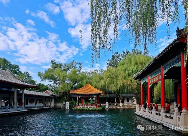 游覽乾隆皇帝稱之為“天下第一泉”的【5A 趵突泉】(瀏覽時間約 1 小時),趵突泉水分三股,晝夜噴涌,水盛時高達數(shù)尺。所謂“趵突”,即跳躍奔突之意,反映了趵突泉三窟迸發(fā),噴涌不息的特點?!磅劳弧辈粌H字面古雅,而且音義兼顧。不僅以“趵突”形容泉水“跳躍”之狀、噴騰不息之勢;同時又以“趵突”摹擬泉水噴涌時“卜嘟”、“卜嘟”之聲可謂絕妙絕佳。
