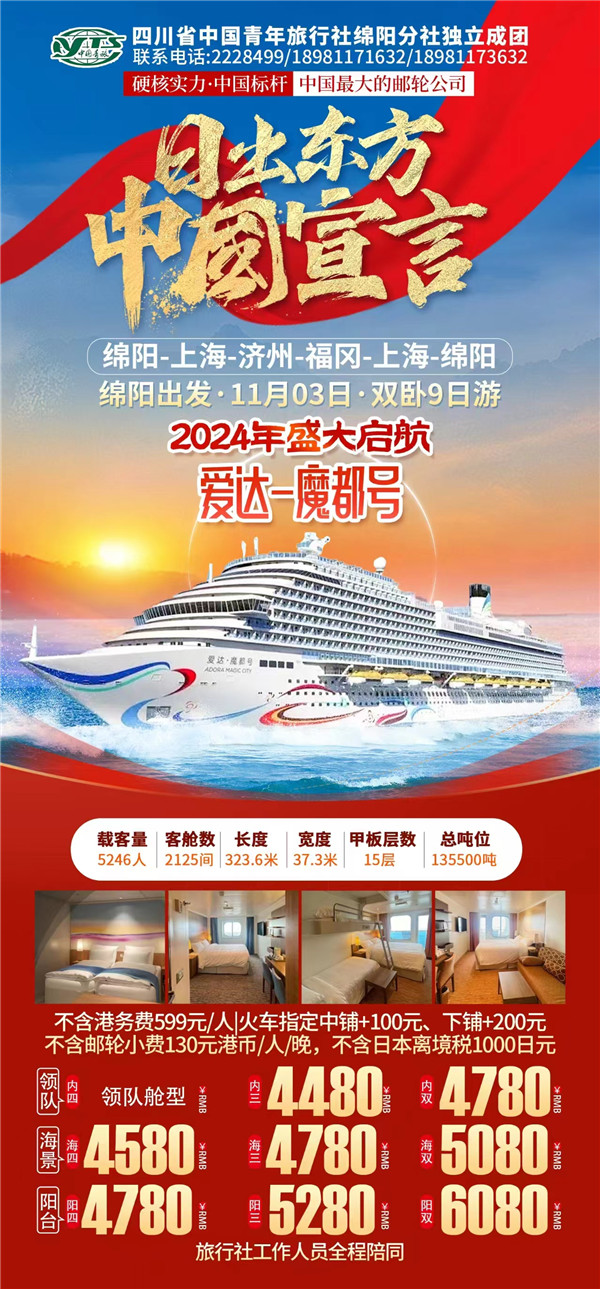 綿陽中旅假日旅行社于2024年10月9日在市工會大廈成功舉行“愛達·魔都號豪華郵輪9日游”旅游線路推薦會?,F(xiàn)場主持人向到場的嘉賓們詳細的介紹了濟州、福岡等地的風土人民、美食、美景以及出游的相關注意事項等內容,受到了嘉賓們的熱烈歡迎和關注。服務熱線:0816-2228499/2238477 。