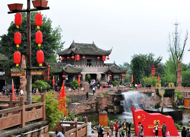 古鎮(zhèn)屬四川省歷史文化古鎮(zhèn)及省級旅游風景區(qū)。古鎮(zhèn)不僅風光秀麗、環(huán)境優(yōu)美,還是馳名中外的天然影視攝影基地。古鎮(zhèn)主要特色是:古街、古樹、古廟、古水陸碼頭、古建筑和古樸的民風民俗。是國家文化部命名的中國民間藝術(shù)(火龍)之鄉(xiāng)、國家級環(huán)境優(yōu)美小城鎮(zhèn)。素有“影視城”、“中國好萊塢”之稱。