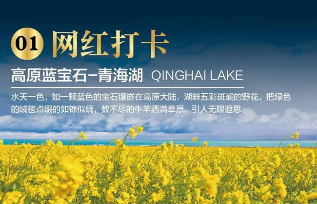 早餐后乘車前往【茶卡鹽湖】(含門票,不含小火車,游覽不低于3小時)茶卡鹽湖,中國的天空之鏡。風光旖旎,景色優(yōu)美。當你踏入茶卡鹽湖的那一刻,就仿佛進入了一個夢幻般的世界。只見湖面平靜如鏡,將天空、云朵、山巒、樹木倒映其中,形成了一幅獨特的水天相接的畫面。這里的鹽層晶瑩剔透,泛著白光,宛如一面巨大的鏡子,將周圍的一切都映照得清晰可見。漫步湖面如行走在云端之上。茶卡鹽湖是古絲綢之路的重要站點,歷史上是商賈、游客進疆入藏的必經之地。湖面上,時而碧波蕩漾,時而有莽莽蒼蒼,集秀麗、壯美于一體,在那里時仿佛靜止般,天地間是一片純凈的白與藍,就像做了一場幻境的夢…這里被國家旅游地理雜志評為“人一生必去的55個地方之一”。贈送參觀青海高原藏寨(免費景點,游覽時間不低于1小時)村寨內外到處都是飄揚的經幡,領略藏族的風土人情,體會藏族文化的魅力。此為贈送項目,若因客觀原因(例如關閉修整、時間、天氣、道路擁堵等因素)造成無法參觀的,則不退任何費用。參觀中國最美的五大湖泊之首高原明珠—【青海湖二郎劍】(含門票,不含電瓶車,不含游船,游覽不低于2小時)青海湖是我國第一大內陸湖泊,也是我國最大的咸水湖。湖面純凈深湛、溫柔恬雅的湖水,滿載著古老而優(yōu)美的傳說,夾帶著文成公主的相思,是如此的波瀾壯闊、恢宏磅礴,漫步清海湖畔,擁一抹晨曦在心,握一縷格?;ǖ拿髌G于手,不思前塵,不念過往,心中,只存世事通透的安然......在這里你可以欣賞的水天均呈現青藍一色,藍天白云映襯在湖中,水波蕩漾,海風拂面,站在湖邊拍照,以天、湖、海岸為背影,沉醉高原的藍寶石,感受歲月如水時光靜好。從廣場走到湖邊處,青海湖就在眼前,沿湖邊木制棧道觀湖散步,有幸可看到湖面上的海鷗在天空翱翔。青海湖的美用再多的語言都是無法形容的,左邊蔚藍的湖水,遠處茫茫草原,牛羊成群,徜徉其中,視野開闊,景色優(yōu)美,給您一種心靈的釋放與洗滌。晚住青海湖沿線或西寧。